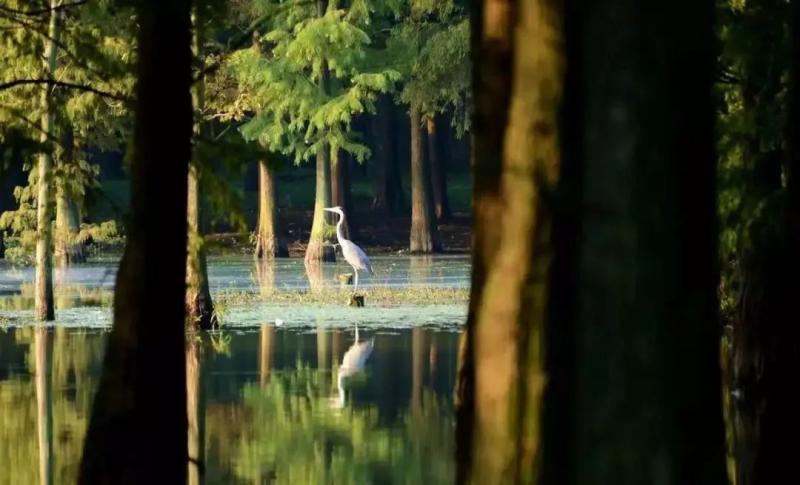 春天的青西郊野公园有大片紫色二月兰,池杉林青葱一片,水上植物也相当繁茂,再加上白鹭成群,景色宜人。秋天时这里的池杉林由绿变黄,是摄影爱好者钟爱的风景。